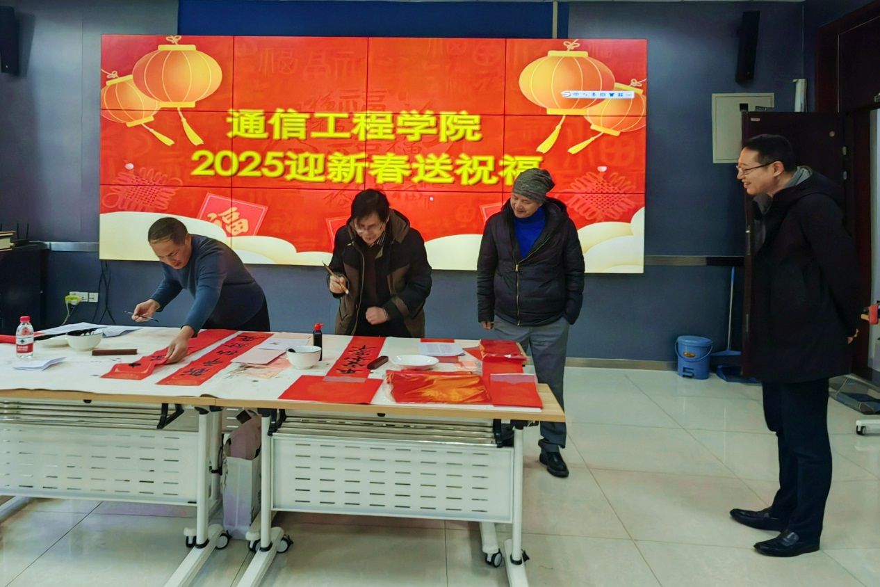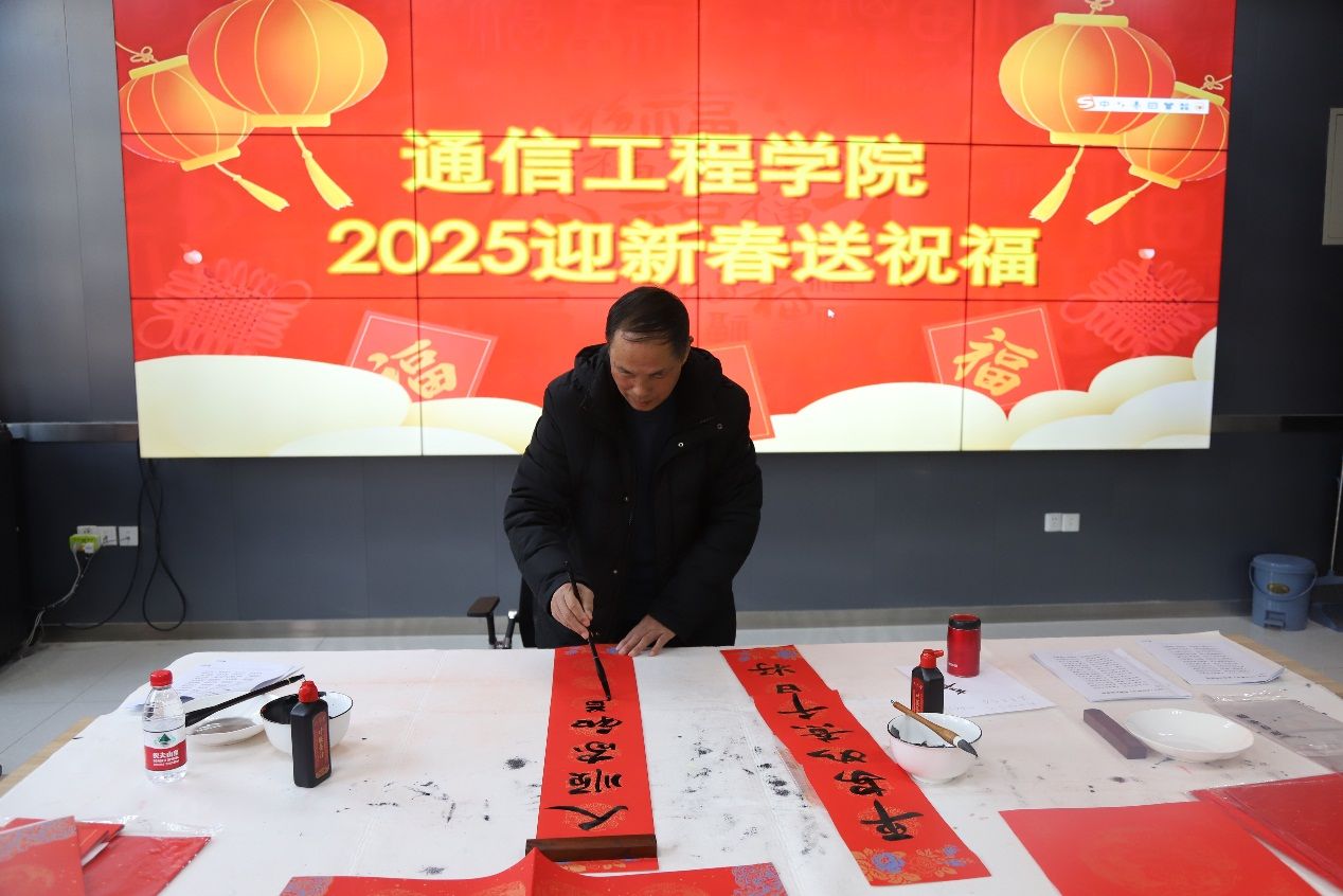 活动在pg国际电子网站工会精心布置的主楼2区219拉开帷幕,现场红纸铺开,墨香四溢,充满了节日的喜庆气氛。本次活动特别邀请通院退休职工、陕西省书法协会会员姚正琪老师。姚老师精神矍铄,手持毛笔,在一张张鲜红的宣纸上挥洒自如,笔走龙蛇间,一副副寓意吉祥、祝福满满的春联跃然纸上,赢得了在场教职工的阵阵掌声和赞叹。