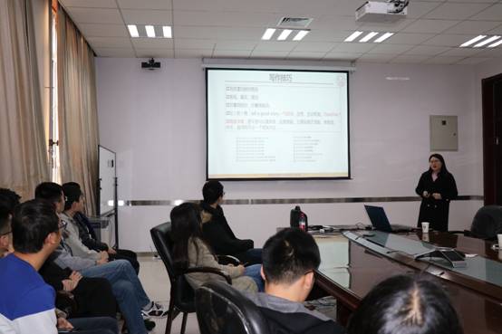 接着,项水英教授结合自己的教育经历向大家讲述了论文的写作技巧,对图表显示、语言表达、文章结构等各方面做了细致地解释,并向同学们强调学术道德的重要性。
