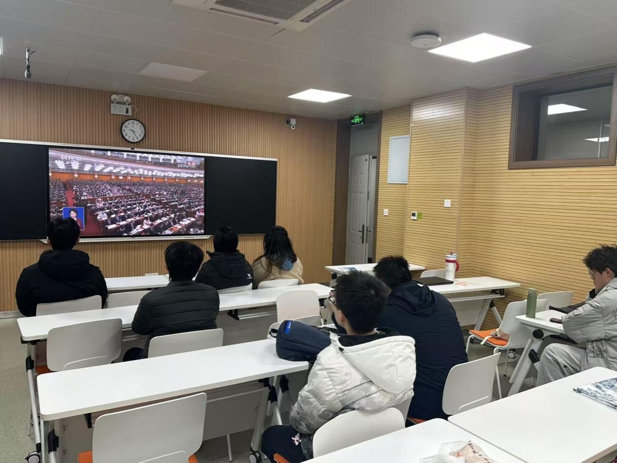 (通讯员 邱丽莹)3月5日上午9时,十四届全国人大三次会议在北京人民大会堂开幕,国务院总理李强代表国务院向十四届全国人大三次会议作政府工作报告。pg国际电子网站党委组织师生以支部、班级等为单位,通过电视、网络、手机客户端等多种形式观看收听开幕会,深刻学习领会两会精神,认真聆听政府工作报告,师生倍受鼓舞,反响热烈。