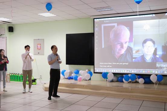首先顾华玺教授幽默风趣地向新生一一介绍了各位老师,同学们掌声连连。Steve Mclaughlin 院长通过远程视频对中英班的新同学表达祝贺和欢迎。