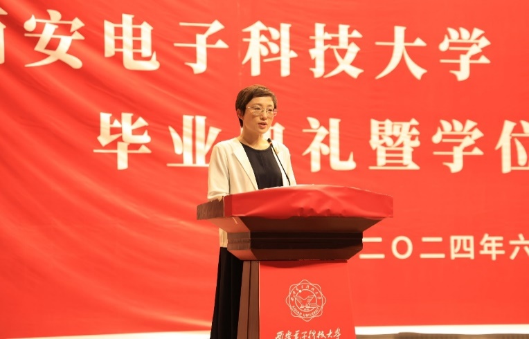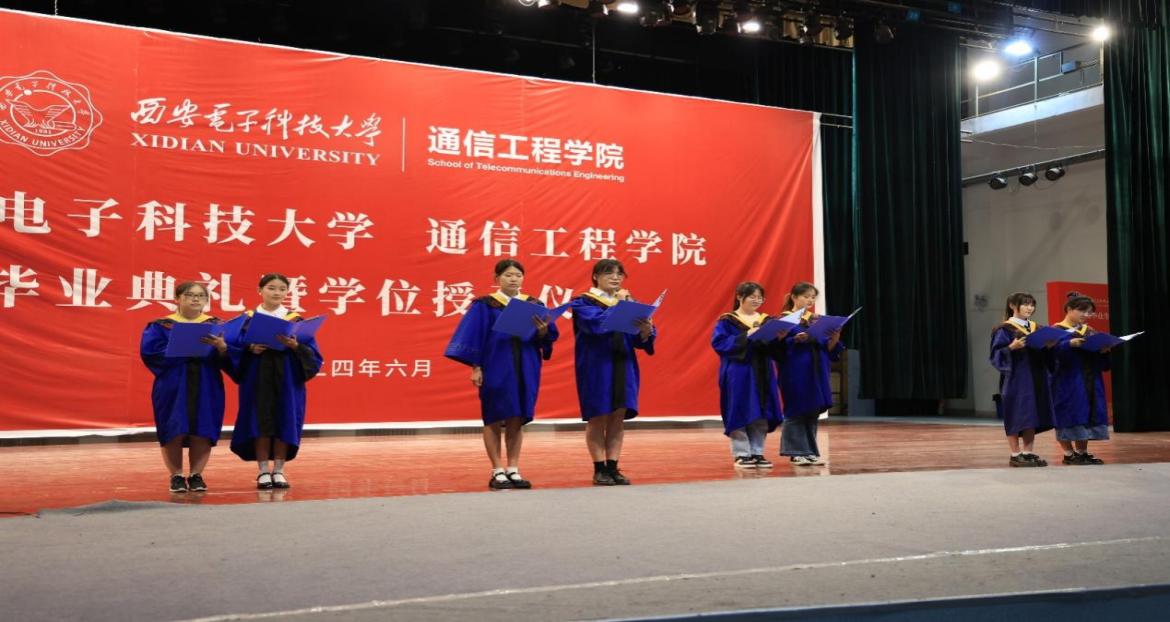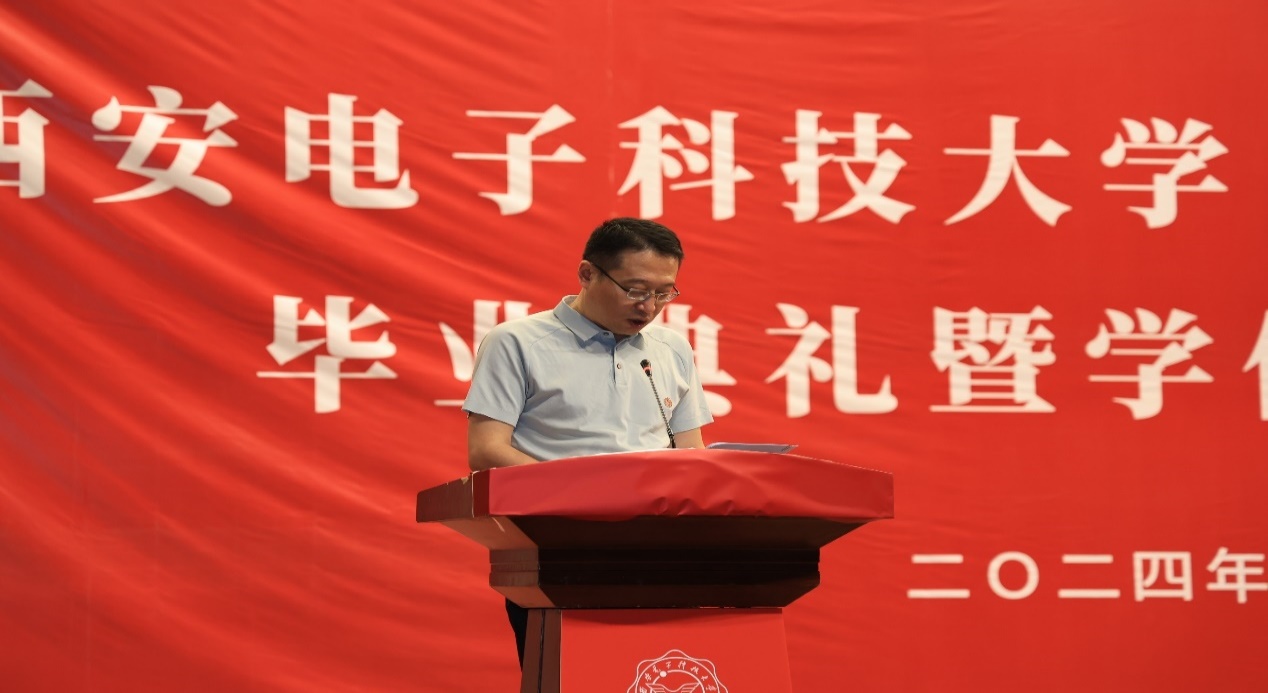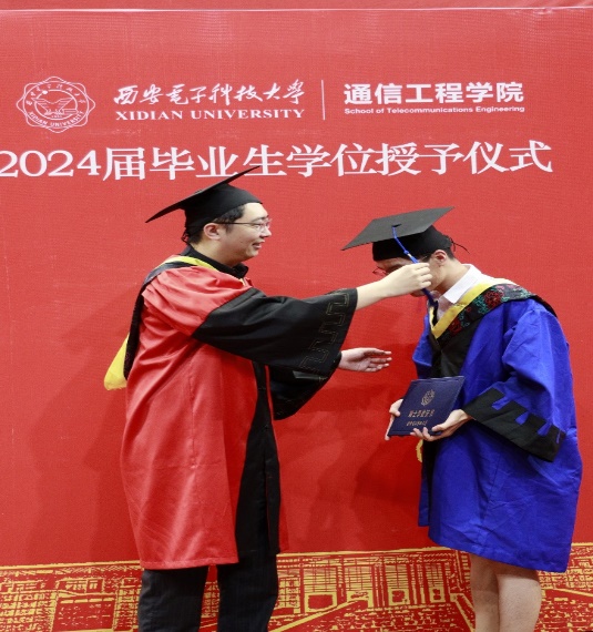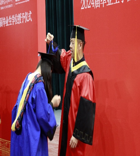 授位仪式上,副院长尚韬宣读了pg国际电子网站2024届研究生学位授予决定。教师代表李娇娇深情致辞:“同学们经过数载的勤奋学习,今日终于迎来了收获的时刻。我代表所有导师,向大家表示最热烈的祝贺!愿大家继续怀揣梦想,书写更加辉煌的未来。”毕业生代表石贝同学代表所有毕业生表达了对母校的深深感激。他回顾了研究生阶段的学术探索与成长历程,对导师的悉心指导以及同学们的并肩作战表达了由衷的感谢。