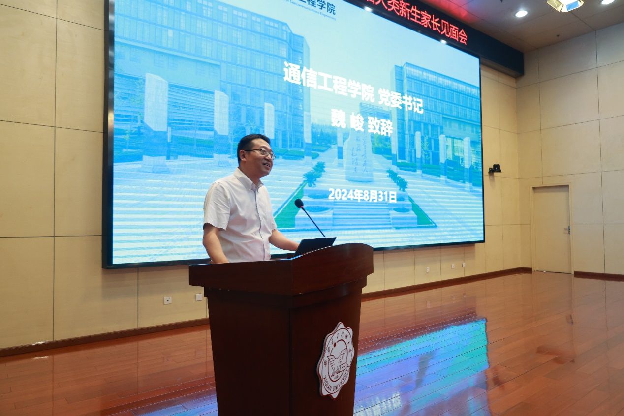 (通讯员 王星雨)为欢迎2024级通信大类本科生入学pg国际电子网站,帮助学生及家长了解学院情况,加强家校沟通,形成育人合力,助力学生成长成才。按照学校部署,学院积极响应,精心筹备,8月31日下午,学院2024级通信大类新生家长见面会在南校区行政楼210报告厅举行,学院党委书记魏峻、执行院长李云松,教学相关老师及2024级辅导员参与本次见面会,见面会由学院党委副书记沈强主持。