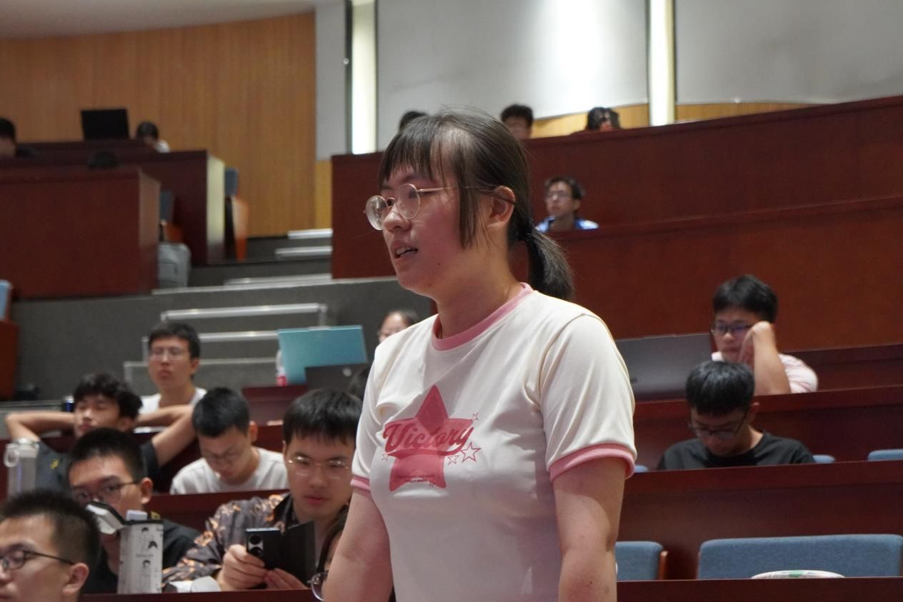 李静老师对大一新生提出了三点希望:一是学好通识课程,搭建基础框架。二是进行自我提升,利用丰富的学习资源开展编程语言实践训练。三是打开学术视野,关注我国科技创新领域的革新与飞跃。她也鼓励同学们静下心来思考,聚焦能够改变行业,推动社会发展的真问题,将基础研究和前沿探索转化为推动技术革新和产业升级的落地项目。