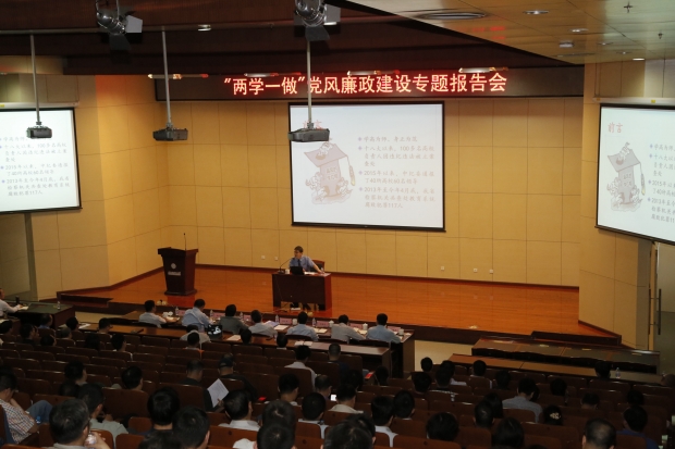5月18日下午,pg国际电子网站“两学一做” 党风廉政建设专题报告会在南校区举行,陕西省人民检察院培训中心主任冯耀辉为我校党员干部作预防职务犯罪专题报告。报告会由党委书记陈治亚同志主持。