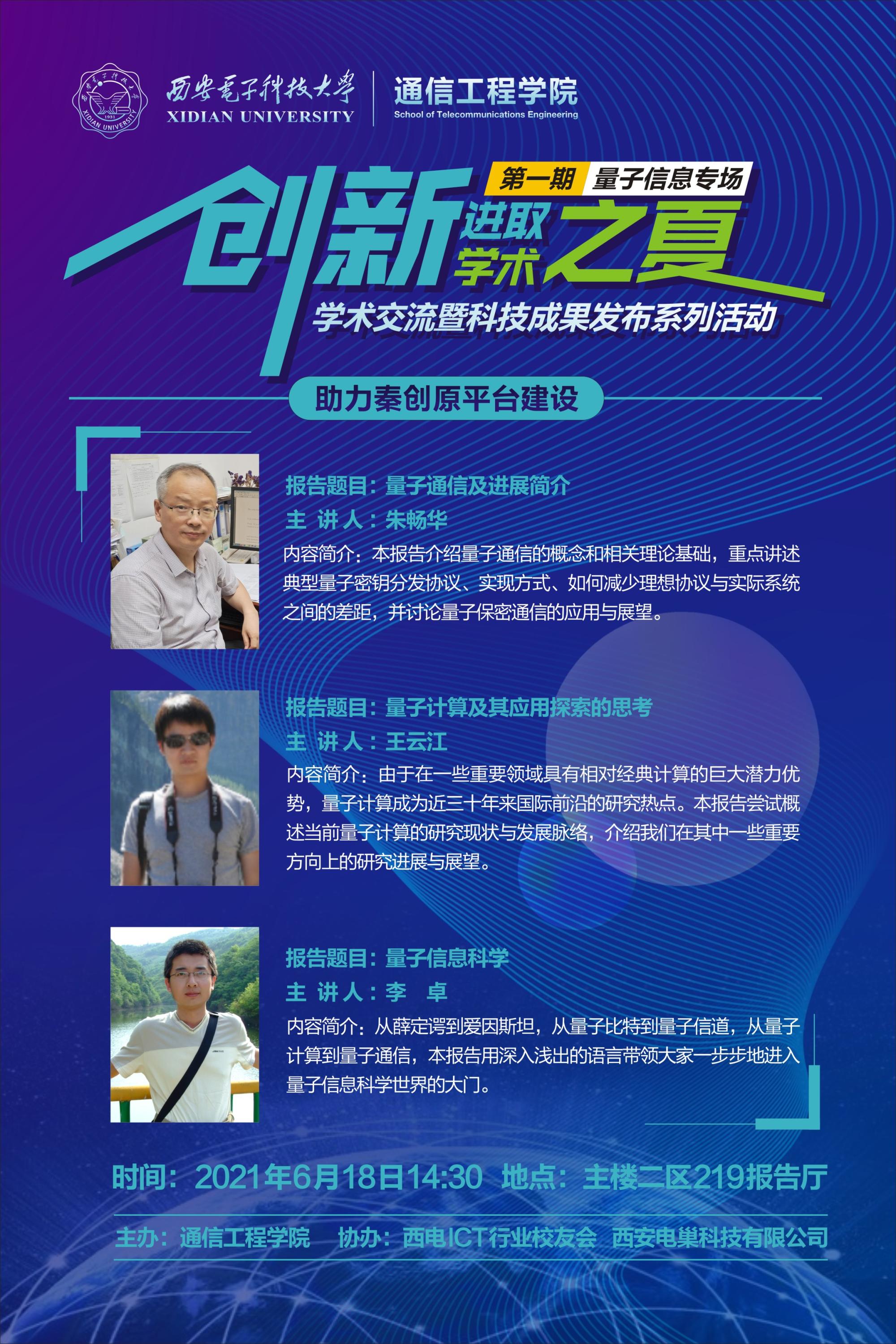 【活动预告】“创新进取学术之夏”系列学术交流活动第一期量子信息专场