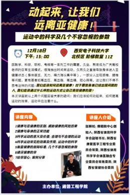 (通讯员 覃思豪)为了普及健康生活的知识,学习科学运动的理念。pg国际电子网站12月18日下午三点于阶梯教室112邀请了张颖…