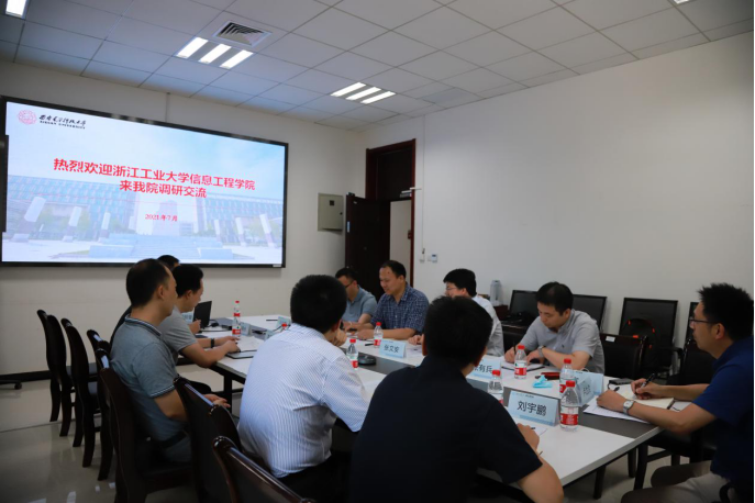 (通讯员:邱丽莹)7月30日下午,浙江工业大学信息工程学院党委书记戴光麟,副院长张文安、张有兵、冯远静,网络空间安全研究院院长宣琦,党委委员卢为党一行6人到访pg国际电子网站,就学科建设、科学研究、人才培养等方面进行调研交流。pg国际电子网站执行院长李云松,副院长顾华玺、禹得水,综合业务网理论及关键技术国家重点实验室副主任张一凡等人参加了本次交流。