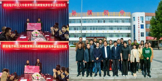 教育强则国家强,教育兴则民族兴。帮扶团一行第一站就来到学院结对帮扶学校——蒲城县孙镇初级中学,开展有特色的教育帮扶活动。校地举行教育帮扶捐赠暨筑梦奖学金设立仪式,pg国际电子网站引进陕西中科锐星科技发展有限公司捐赠9万元教育帮扶资金,学校学生创业团队西安极趣工坊广告设计有限公司发起成立筑梦奖学金并现场捐赠10万元。孙镇初中校长李永军接受捐赠,并对学院及企业的倾力帮扶支持表示由衷感谢,李永军校长回顾了近几年pg国际电子网站在孙镇中学开展教育帮扶工作的情况,对帮扶给本校教育水平提升带来的显著成效表示高度赞扬,希望未来在双方协作的过程中,进一步加强与西电的交流合作,不断学习西电在人才培养方面的先进经验。