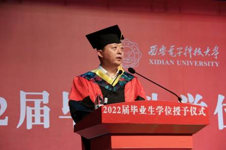 李云松在寄语中代表学院向顺利完成学业的2022届本科毕业生表示祝贺,他回顾了毕业生同学们四年的生活点滴,他表示作为学院的院长、同学们的师长,看见同学们取得的成绩,他发自内心为同学们感到自豪。李云松对毕业生提出四点希望:一是要艰苦奋斗,保持吃苦在前、拼搏在先的斗志。把西电精神转化为传承、弘扬、践行社会主义核心价值观的具体行动,脚踏实地地承担起历史的重任,勇做走在时代前列的奋进者、开拓者、奉献者,让青春在为祖国、为人民、为民族的奋斗中实现价值。二是要自强不息,锤炼逢山开路、遇河架桥的意志。面向未来,希望同学们——顶天,敢与高者攀;立地,敢与强者拼。以矢志奋斗的决心、坚韧不拔的意志、持之以恒的努力,“逢山开路、遇水架桥”,书写无悔人生。三是要求真务实,砥砺坚忍不拔、不骄不躁的品质。希望同学们以“板凳一坐十年冷”的淡定和执着,坚忍不拔、不骄不躁,在试错探索中奋力前行,在携手并进中追逐梦想。四是要爱国为民,传承全心全意为人民服务的担当。希望同学们,不论身处何方、从事何种职业,都要始终把党和国家、把社会和人民放在最重要的位置,把个人的理想追求融入国家和民族事业中,书写无愧于时代的青春之歌!最后,李云松深情寄语,表示通院永远张开双臂欢迎同学们常回家看看。
