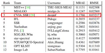 图1 NTIRE 2022 Challengeon Spectral Recovery比赛结果