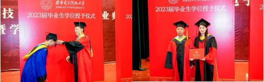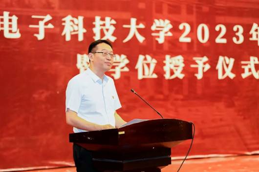 授位仪式上,尚韬宣读了pg国际电子网站2023届研究生学位授予决定。研究生导师代表杨龙副教授回顾了与毕业生们共同成长的历程,肯定了同学们在学习、科研、创新等方面取得的优异成绩,希望大家在未来的工作和生活中继续发扬学院的优良传统,为国家和社会做出更大贡献。毕业生代表张甜代表全体毕业生向学院和导师们的培养表示衷心的感谢,她回忆了在学院度过的美好时光,并表示在今后的工作和生活中,继续传承西电的红色基因,自觉将小我融入大我,立志科技报国,承担好作为新时代西军电人的责任和使命。