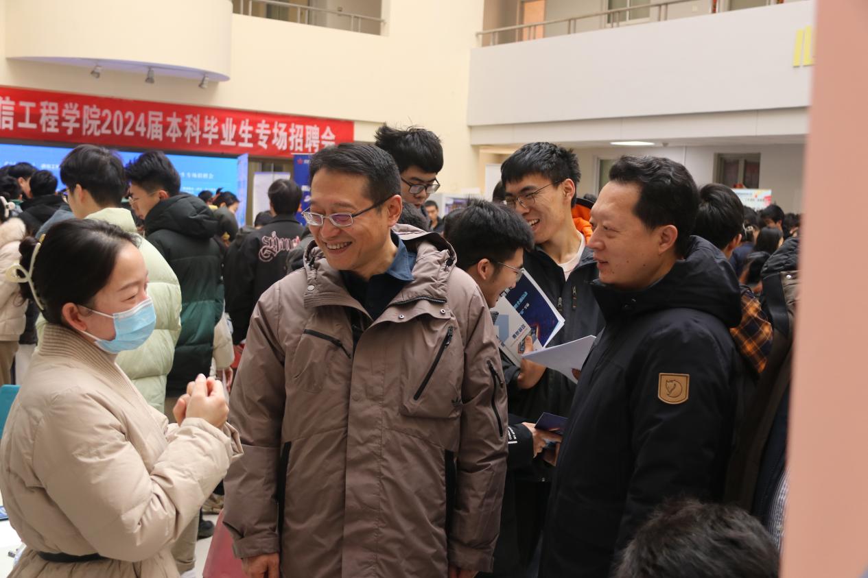 pg国际电子网站党委书记魏峻、执行院长李云松等学院领导深入招聘会现场,认真听取用人单位对学院就业工作的意见,详细了解当前企业人才招聘需求、人才市场状况以及毕业生投递简历等情况;同时与毕业生亲切交流,询问参会毕业生的求职情况,关心同学们的求职进展和就业意向,鼓励大家要充满信心、积极主动,尽快找到满意的工作。