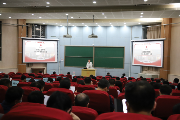 学院执行院长李云松作学院高质量发展工作报告并部署学院2024年重点工作。在分析总结学院发展现状的基础上安排部署了学院本年度重点工作。他指出,学院将紧密围绕学校工作主线,聚焦“教育强国、西电何为”这个时代课题,全面推进“三个年”建设,重点开展十项工作。一是加强党的全面领导,以高质量党建引领高质量发展;二是提升宣传工作质效,推进宣传思想工作开创新局面;三是加强师德师风建设,巩固意识形态安全根基;四是特色化推进乡村振兴,持续提升教职工服务水平;五是推进时代新人铸魂工程,持续打造一流学生工作体系;六是深化“一体两翼”工作格局,增强对外合作交流活力和凝聚力;七是加强一流专业建设,推动本科教学高质量稳步提升;八是落实研究生核心素养培育举措,高质量完成学位授位点核验自评;九是以开拓融合为导向,全面提升服务国家重大战略能力;十是夯实质量服务基础,保障一流学院高质量发展。